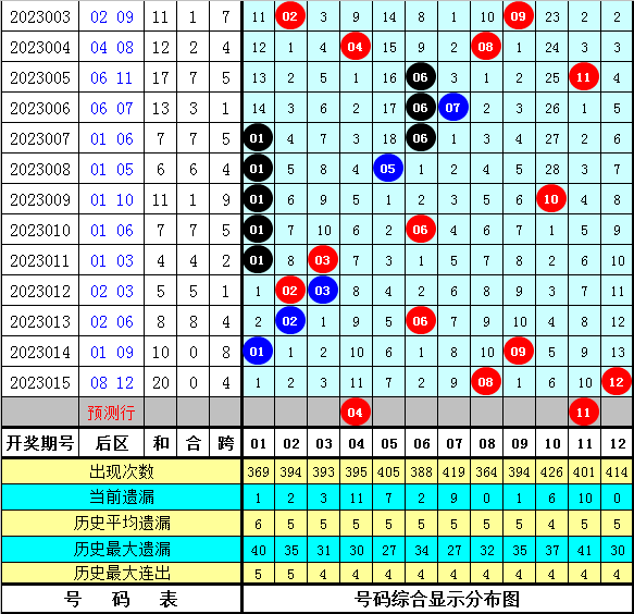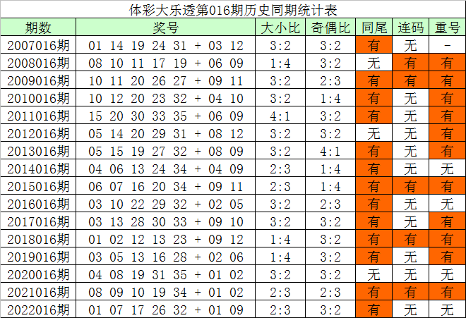 大乐透第016期历史开奖16次,奖号统计见下表: