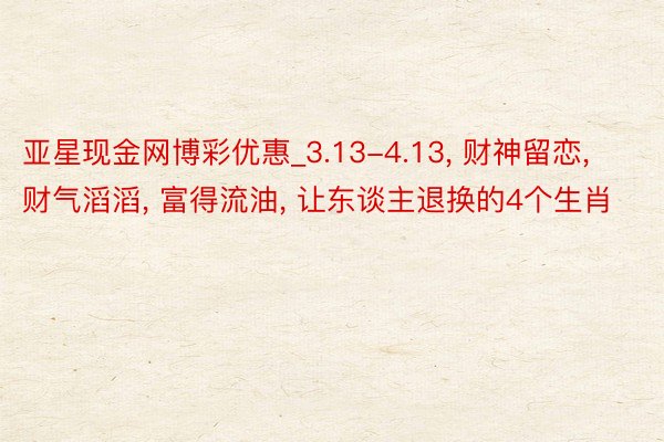 在东谈主生路径中,偶然分咱们会感受到一种奇妙的力量,仿佛财神留恋,财气滔滔而来,富得流油,让周围的东谈主齐为之退换不已。这种运道不是每个东谈主齐能领有的,但在3.13-4.13,有四个生肖将会额外运道,宛如财神庇佑,让他们在钞票之路上飞驰自如,令东谈主热爱不已。